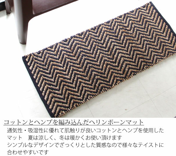 \ ポイント最大29倍 23日 1:59まで/Hemp Cotton Herringbone Rug 180×50cm ヘリンボーン 北欧 敷物 モダン インテリア ネイビー ブラック キッチンマット おしゃれ 個性的 麻 綿 玄関マット 屋内 室内 コットン ヘンプ 【HL_NEW_18】