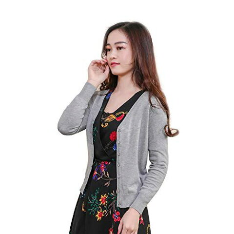 [HDONYUi]カシミヤタッチ Vネックカーディガン レディース 長袖ニット オフィス 事務 きれいめ かーでがんレディース 女 ボレロ 無地 かわいい 看護 仕事 軽量 上品 黒 人気 グレー