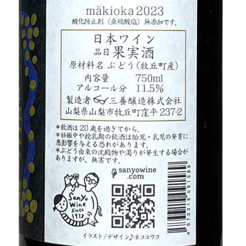 残りわずか【無添加 メルローペティヤン】三養醸造[牧丘メルローペティヤン 2020 750ml]赤ワイン 微発泡 辛口 日本 ワイン 山梨 国産 サンヨー 猫