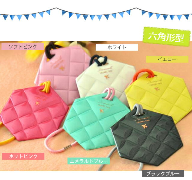 【メール便送料無料】GPT ネームタグ キルト風 ファッショナブル 六角形 ダイヤ型 ラゲッジタグ 旅行 かわいい おしゃれ ゴム紐 アウトレット gu1a156-mail(gu1a159)(1通につき12点迄)