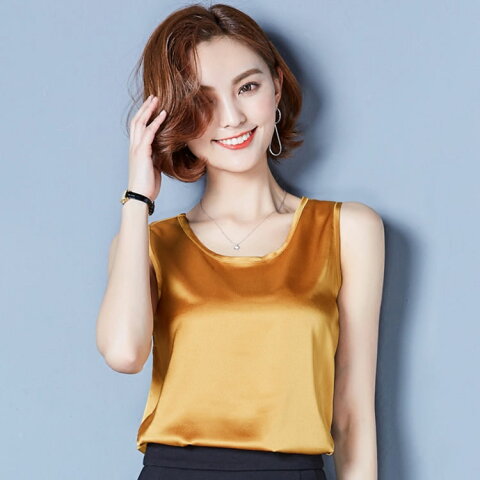 全20color展開!大きサイズあり ノースリーブトップス タンクトップ レディース インナー トップス Uネック ブラウス ノースリーブ 薄手 夏 シンプル 無地 サテン調 シルクタッチ ゆったり