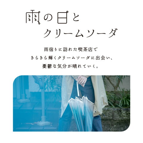 メーカー希望小売価格はメーカーカタログに基づいて掲載しています カタログはこちら 旅する喫茶 meets Wpc. 『雨の日とクリームソーダ』 雨宿りに訪れた喫茶店できらきら輝くクリームソーダに出会い、憂鬱な気分が晴れていく。